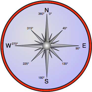 The compasses provided in mobile phones are not highly accurate, precise or repeatable. On the iPhone 4, this error is typically about ±10° or about ±3% or so. On the above compass, this would look something like:
